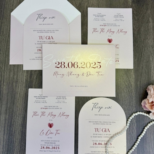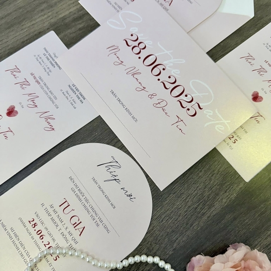 Mẫu thiệp cưới với chi phí chỉ từ 3.000đ thiết kế tinh tế, in ấn KTS công nghệ cao trên nền giấy ánh kim ngọc trai thơm nhẹ
