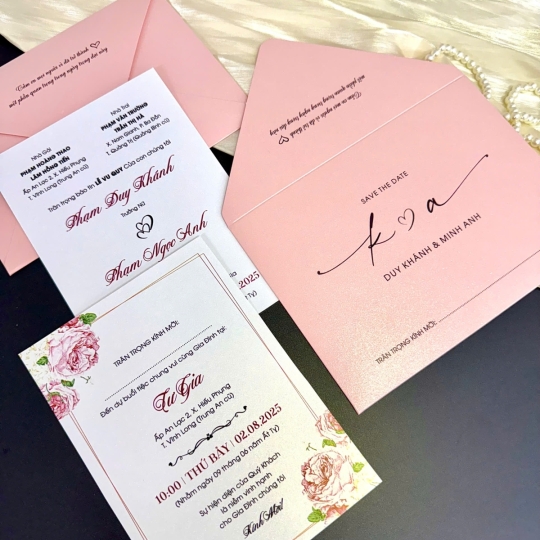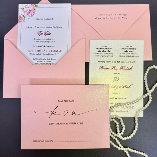Mẫu thiệp cưới với chi phí chỉ từ 3.000đ thiết kế tinh tế, in ấn KTS công nghệ cao trên nền giấy ánh kim ngọc trai thơm nhẹ