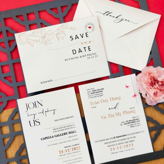 Mẫu thiệp cưới với chi phí chỉ từ 2.500đ thiết kế tinh tế, in ấn KTS công nghệ cao.