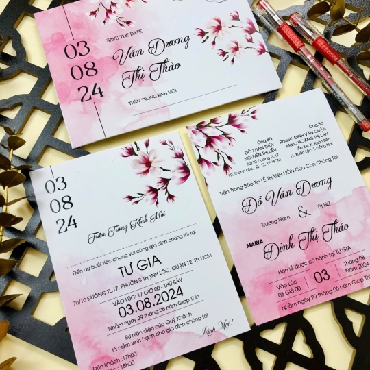 • Có thể hỗ trợ khách in gấp lấy trong ngày, với điều kiện khách chốt mẫu, nội dung thiệp sớm và chỉ chọn các mẫu thiệp có sẵn