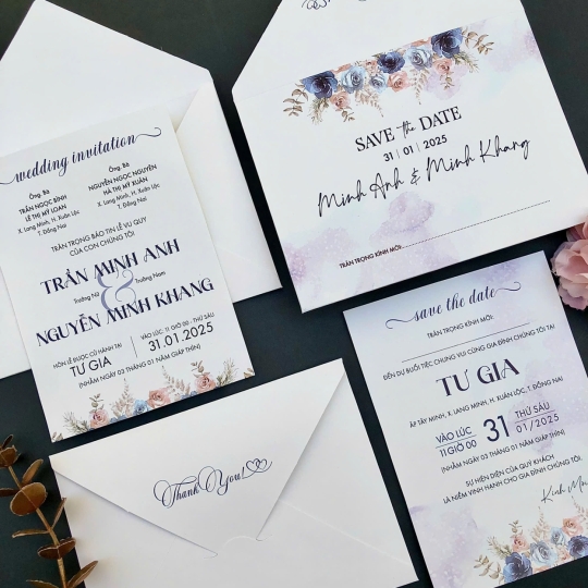 Mẫu thiệp cưới với chi phí chỉ từ 2.500đ thiết kế tinh tế, in ấn KTS công nghệ cao.