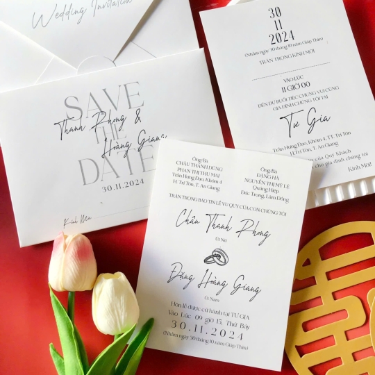 Mẫu thiệp cưới với chi phí chỉ từ 2.500đ thiết kế tinh tế, in ấn KTS công nghệ cao.
