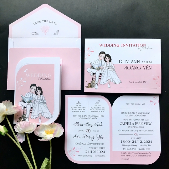Mẫu thiệp cưới với chi phí chỉ từ 2.500đ đa dạng thiết kế tinh tế, in phun trên phôi thiệp có sẵn
