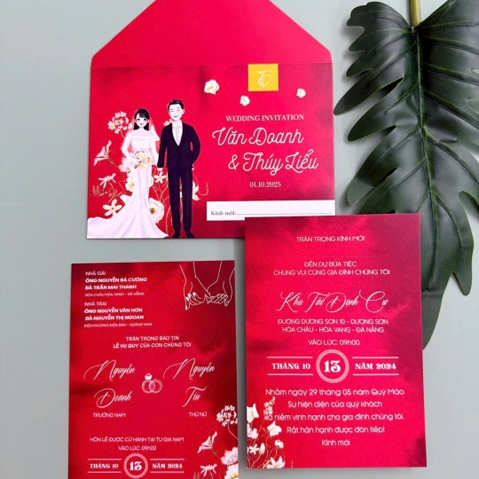 Mẫu thiệp cưới với chi phí chỉ từ 3.000đ họa tiết chibi xinh xắn, đa dạng thiết kế tinh tế trên chất liệu GIẤY ÁNH KIM thơm nhẹ sang chảnh.