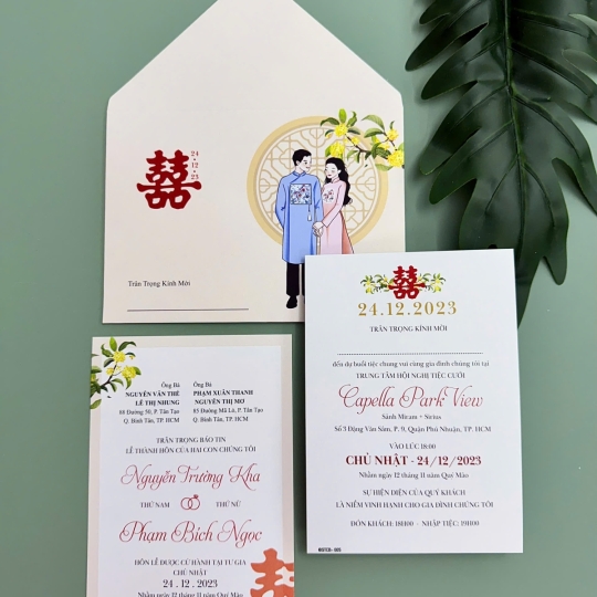Mẫu thiệp cưới với chi phí chỉ từ 3.000đ họa tiết chibi xinh xắn, đa dạng thiết kế tinh tế trên chất liệu GIẤY ÁNH KIM thơm nhẹ sang chảnh.
