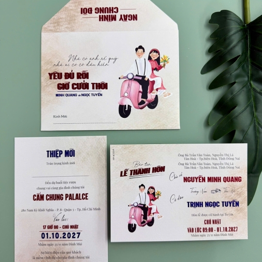 Mẫu thiệp cưới với chi phí chỉ từ 3.000đ họa tiết chibi xinh xắn, đa dạng thiết kế tinh tế trên chất liệu GIẤY ÁNH KIM thơm nhẹ sang chảnh.