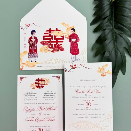 Mẫu thiệp cưới với chi phí chỉ từ 3.000đ họa tiết chibi xinh xắn, đa dạng thiết kế tinh tế trên chất liệu GIẤY ÁNH KIM thơm nhẹ sang chảnh.