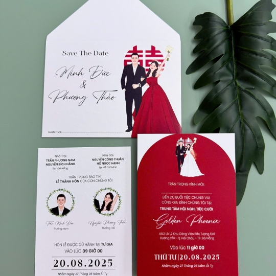 Mẫu thiệp cưới với chi phí chỉ từ 3.000đ họa tiết chibi xinh xắn, đa dạng thiết kế tinh tế trên chất liệu GIẤY ÁNH KIM thơm nhẹ sang chảnh.
