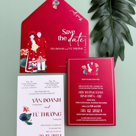 Mẫu thiệp cưới với chi phí chỉ từ 3.000đ họa tiết chibi xinh xắn, đa dạng thiết kế tinh tế trên chất liệu GIẤY ÁNH KIM thơm nhẹ sang chảnh.