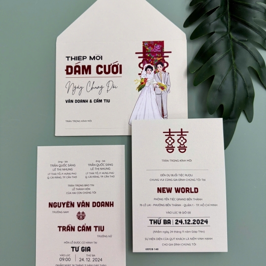 Mẫu thiệp cưới với chi phí chỉ từ 3.000đ họa tiết chibi xinh xắn, đa dạng thiết kế tinh tế trên chất liệu GIẤY ÁNH KIM thơm nhẹ sang chảnh.