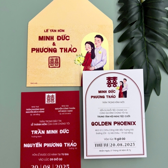 Mẫu thiệp cưới với chi phí chỉ từ 3.000đ họa tiết chibi xinh xắn, đa dạng thiết kế tinh tế trên chất liệu GIẤY ÁNH KIM thơm nhẹ sang chảnh.