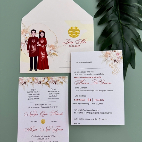 Mẫu thiệp cưới với chi phí chỉ từ 3.000đ họa tiết chibi xinh xắn, đa dạng thiết kế tinh tế trên chất liệu GIẤY ÁNH KIM thơm nhẹ sang chảnh.