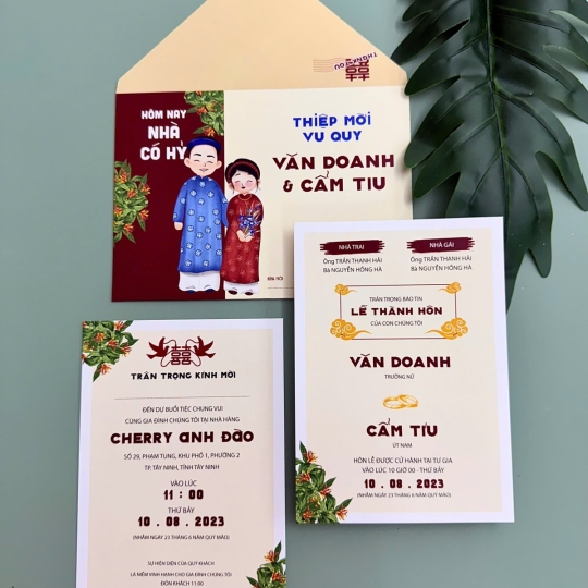 Mẫu thiệp cưới với chi phí chỉ từ 3.000đ họa tiết chibi xinh xắn, đa dạng thiết kế tinh tế trên chất liệu GIẤY ÁNH KIM thơm nhẹ sang chảnh.