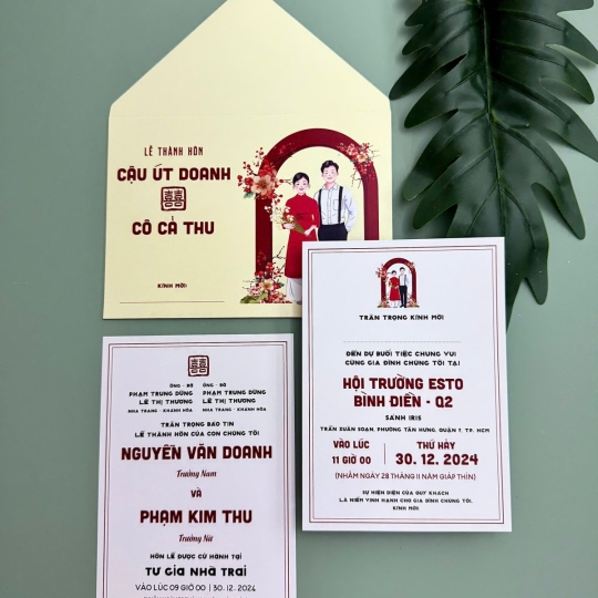 Mẫu thiệp cưới với chi phí chỉ từ 3.000đ họa tiết chibi xinh xắn, đa dạng thiết kế tinh tế trên chất liệu GIẤY ÁNH KIM thơm nhẹ sang chảnh.