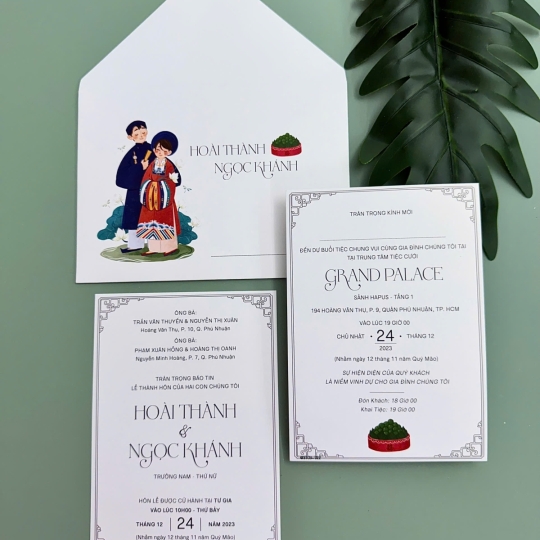 Mẫu thiệp cưới với chi phí chỉ từ 3.000đ họa tiết chibi xinh xắn, đa dạng thiết kế tinh tế trên chất liệu GIẤY ÁNH KIM thơm nhẹ sang chảnh.